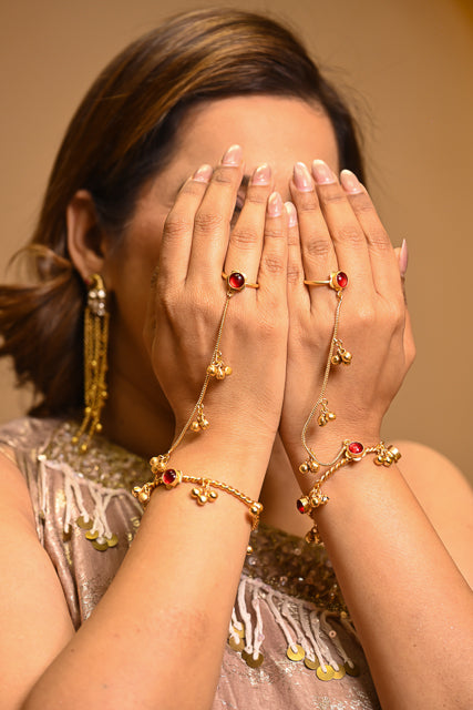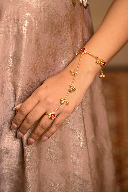 Jingle your way through life with the Noor Ghungroo Hathphool! This delightful single-piece hand ornament brings traditional charm with a modern twist. Adjustable to fit your wrist perfectly, it's crafted to be nickel-free so your skin stays happy and irritation-free. Lightweight enough to wear all day without fatigue, you'll forget you're wearing it—until that enchanting ghungroo sound reminds you! Perfect for festivals, celebrations, or whenever you want to add a sprinkle of joy to your everyday style.